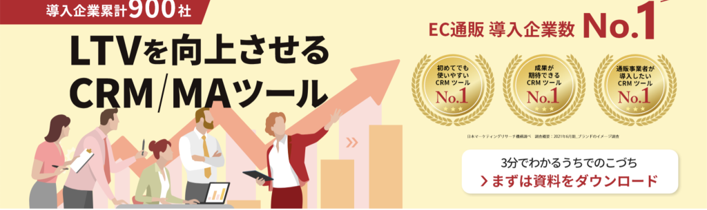 これまでLTVを最大化させる方法をご紹介しました。メールマーケティング(メールマガジン、DM)、アップセル、クロスセル等ありますがさらに効率的に行うためにはCRMツールの導入がおすすめです。