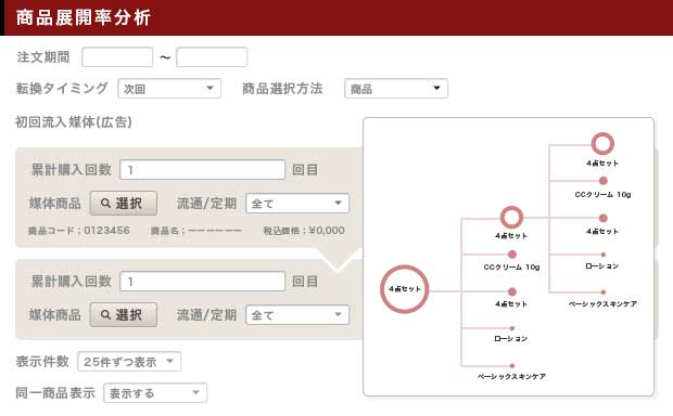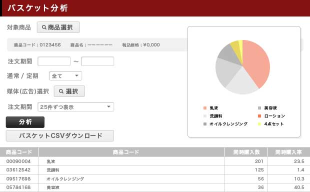関連性の高い商品を発見することにより、同時購入頻度の高い商品との相乗効果を狙った販促や棚割(サイト構築)へ活用することができます。