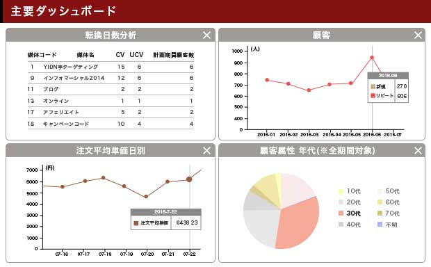 転換率が高い商品を把握でき、特定の商品もしくはカテゴリでの詳細な分析をすることができます。顧客のアップセルやクロスセルの促進が可能になります。